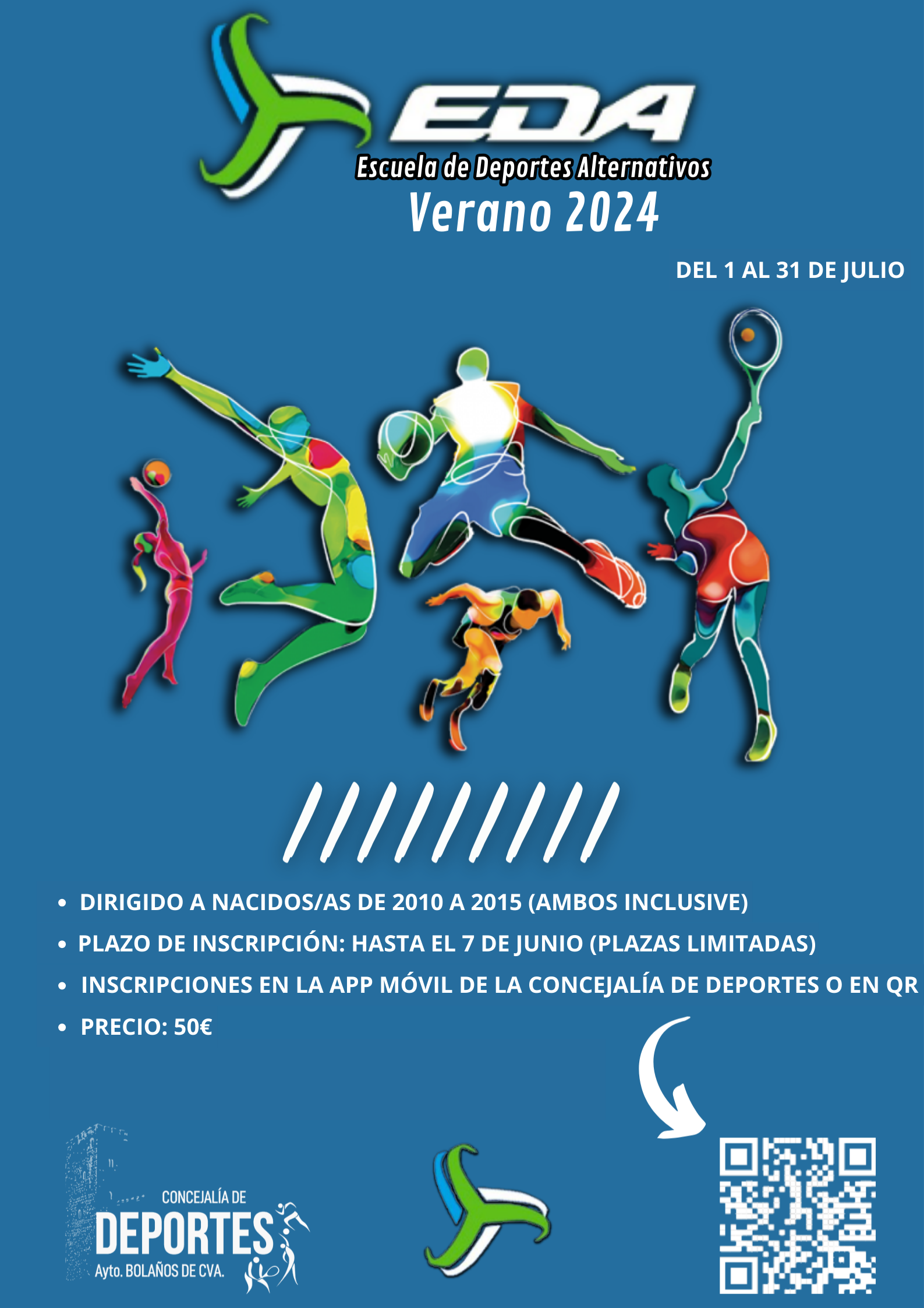 ESCUELA DE DEPORTES ALTERNATIVOS 21/05/2024 Abierto el plazo de inscripción de la Escuela de Deportes Alternativos. Inscripciones en App Deportes Ayto. Bolaños de Cva. Información en el Área de Deportes del Aytuntamiento.